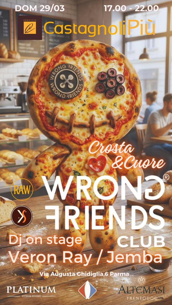 Promosso da Wrong Friends Club, in collaborazione con @ketrinstreetrecords, @surf_in_paradise_, @raw_event_ e @platinumparma, l’appuntamento si propone di offrire un’esperienza sensoriale che combina il piacere del palato con quello del ritmo. L’obiettivo è creare un punto d’incontro tra diverse realtà cittadine, favorendo la nascita di nuovi spazi di aggregazione all’insegna della creatività e del divertimento responsabile.