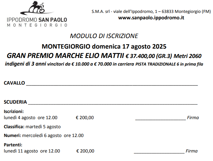 Le scadenze del Marche, dovrebbero sorteggiare la prima fila (se iscritti) Giotto Grif, Ghepardo Vgl, Goelicher St, Gimmy Top, Gulliver Joy e Giotto Ek